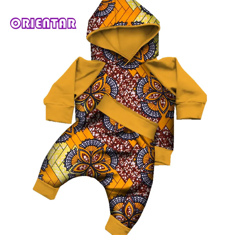 New 2 Pieces Sets African Clothes Baby Boy Tops and Pants Bazin Riche Children Kids Long Sleeve Shirt H