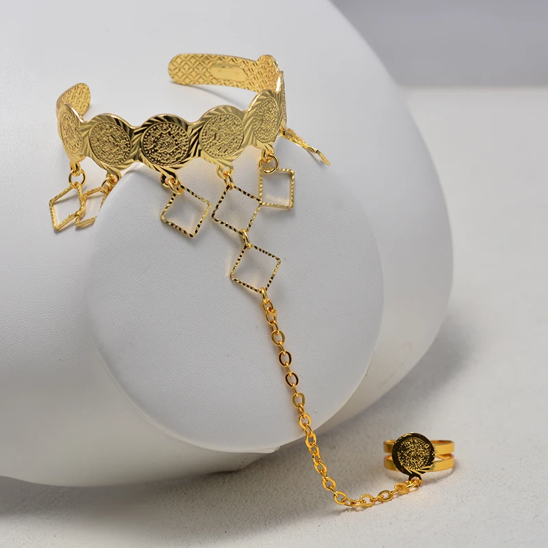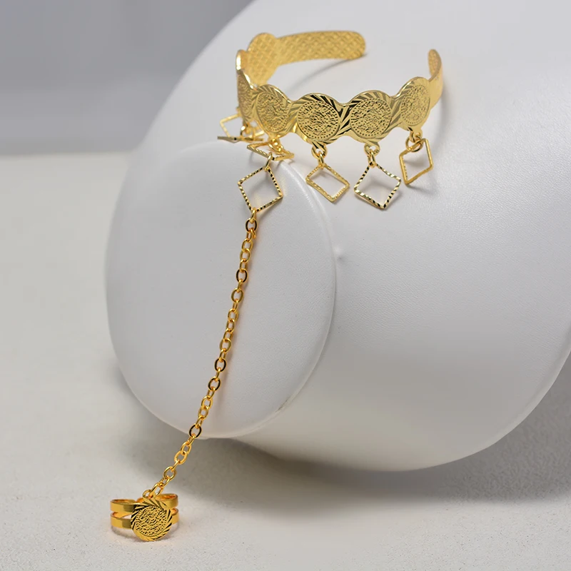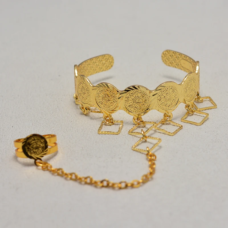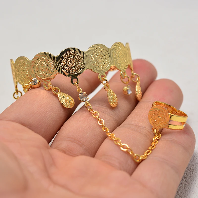 New Can open Gold Color Coin Bangles Bracelet for Baby Boy girl With ring Copper Ethiopian Jewelry Afri
