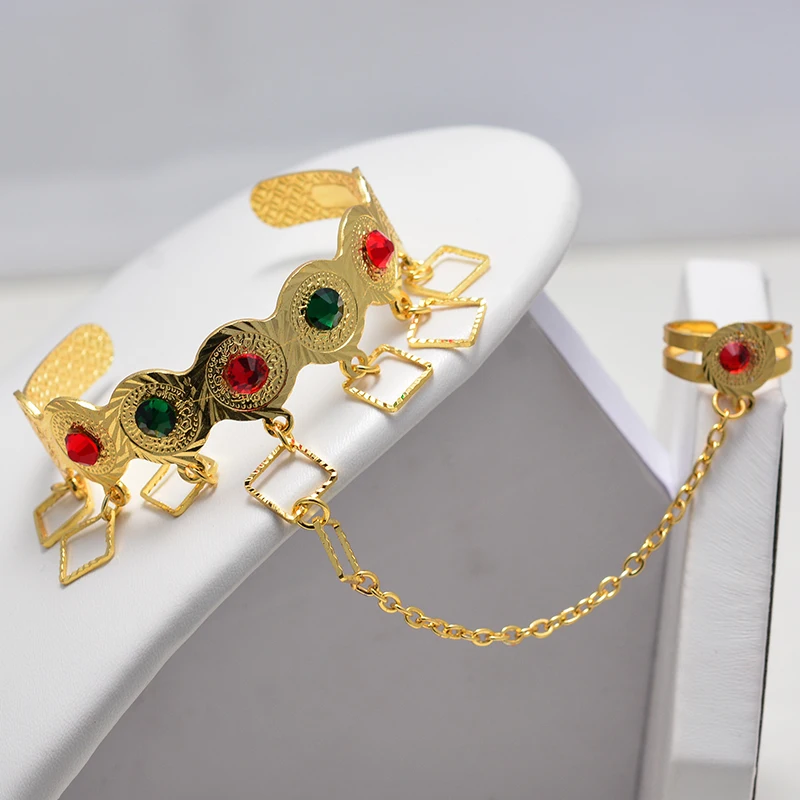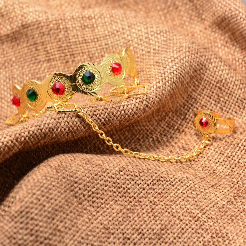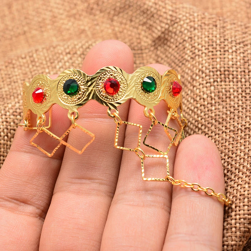 New Can open Red Stone Coin Bangles Bracelet for Baby Boy girl With ring Copper Ethiopian Jewelry Afric