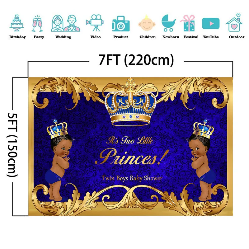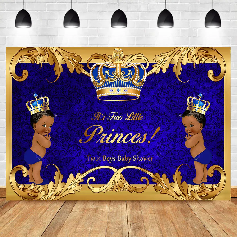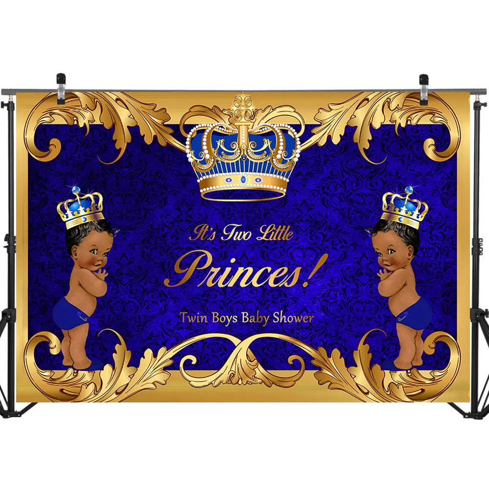 New Twin African American Boys Baby Shower Backdrop Royal Blue Twins Princes Boys Baby Shower Party Ban
