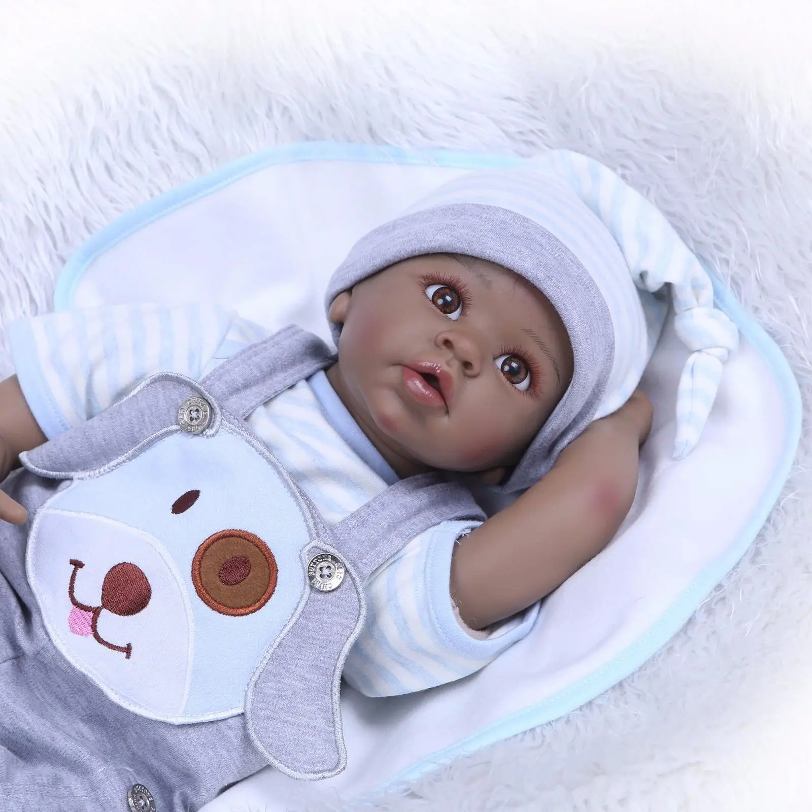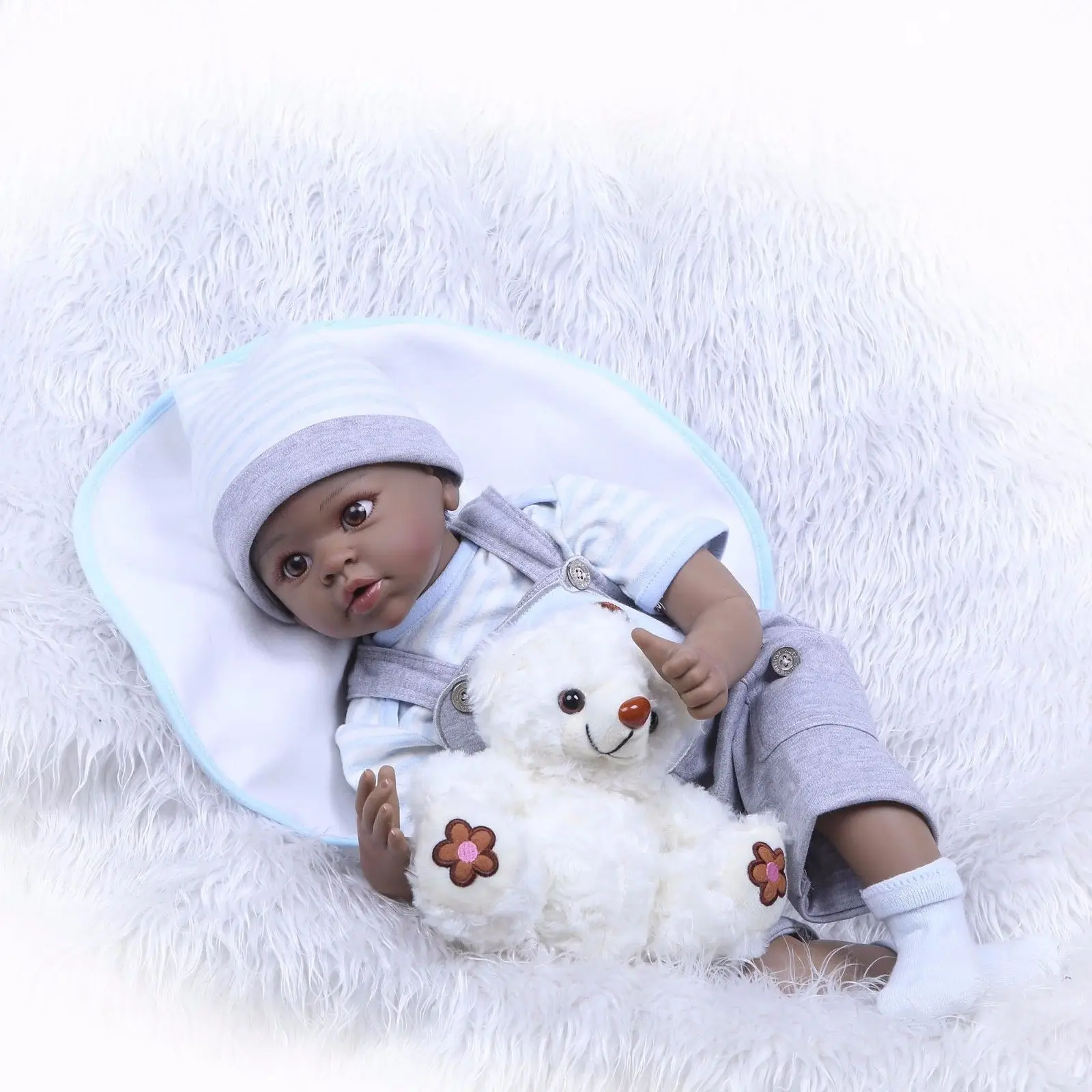 Buy 22' Black African American Reborn Baby Boy Doll Ethnic Biracial Newborn Toddler Baby Doll Toy Kids