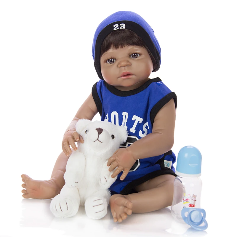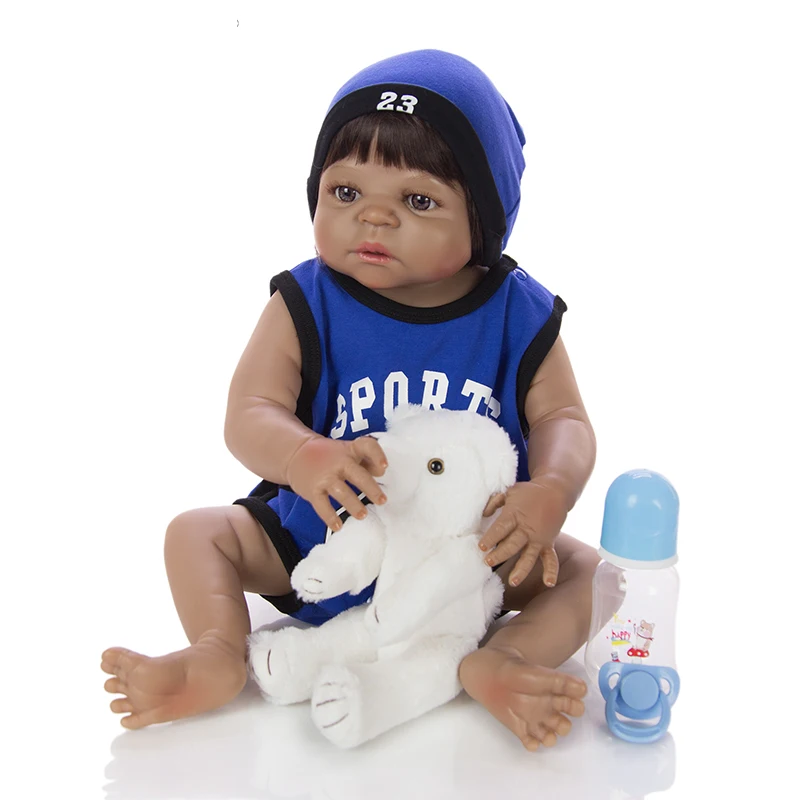 Buy Reborn baby black dolls 23" full silicone vinyl African American babies boy Ethnic doll for childre