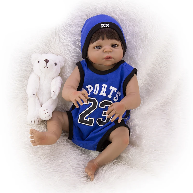 New Reborn baby black dolls 23" full silicone vinyl African American babies boy Ethnic doll for childre