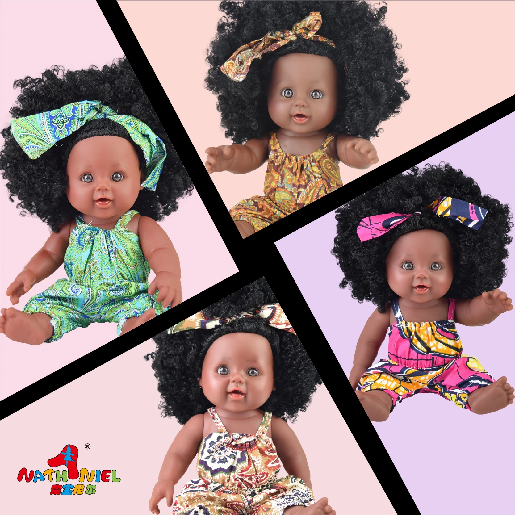 Promo African girl black baby doll 12inch american silicone bebe fashion dolls reborn baby girl boneca c