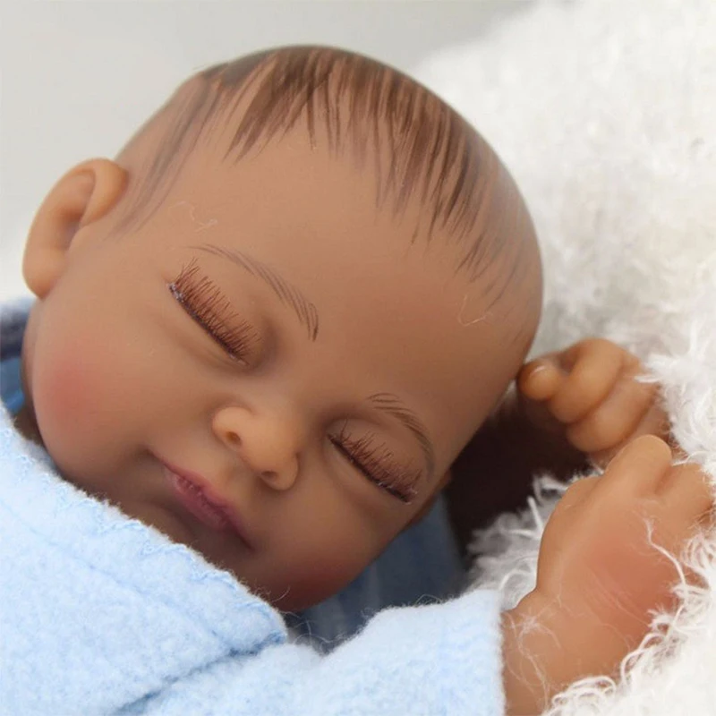 Promo 25cm real looking african american realistic skin baby doll vinyl silicone sleeping reborn bebe dol
