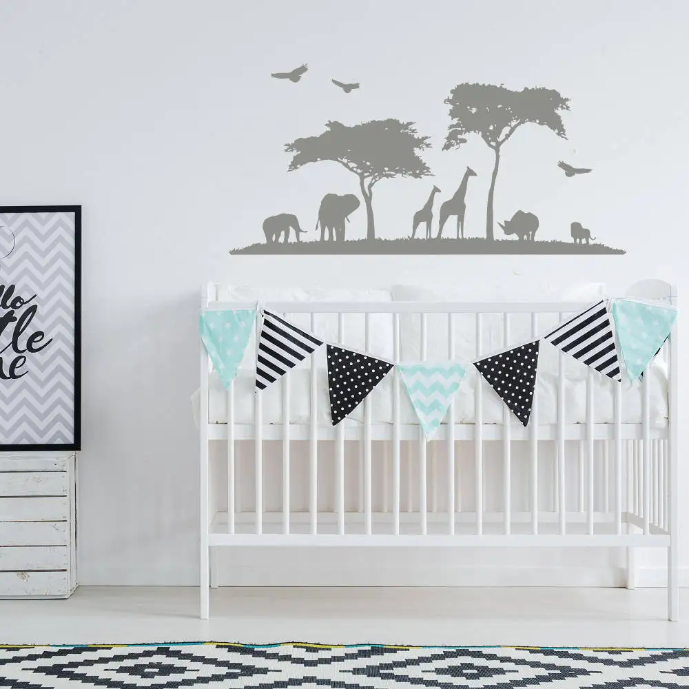Promo Giraffe Elephant African Animals Forest Wall Sticker Baby Kids Boys Girsl Bedroom Decoration Beauty